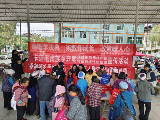 11月6日,平塘县卡蒲毛南族乡平安法治办联合多部门利用赶集日在农贸市场开展2025年防范电信网络诈骗暨打击跨境违法犯罪集中宣传活动。