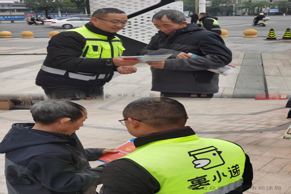 结合12月5日国际志愿者日,市司法局联合市委社工部在万达广场聚焦新就业群体开展普法活动。依托新就业群体“匀新聚力”志愿服务队,创新推出“随手宣”普法模式——组织快递员、外卖骑手等从业人员将宪法知识宣传单页随单配送,利用其流动性强、接触面广的职业优势,让法律知识精准触达商圈、社区。既满足了新就业群体的法治需求,又构建起“以点带面”的普法传播网络,为新兴行业健康发展筑牢法治根基。