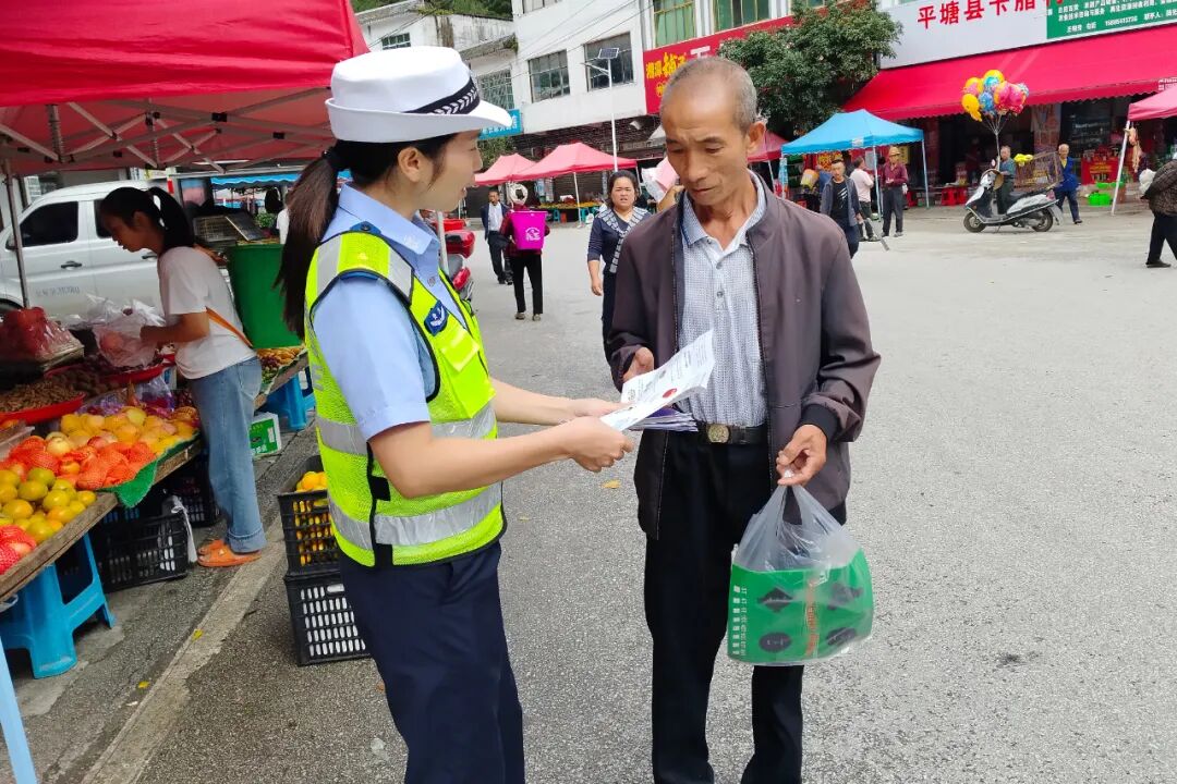 强化宣传引导,念好“安全诀”。积极组织宣传民辅警到街头巷尾、社区村寨、田间地头开展形式多样的交通安全宣传活动。以敲门行动、发放宣传资料、院坝会等形式,向广大群众讲解酒驾醉驾、无证驾驶、违规载人等交通违法行为的危害性及后果,引导群众自觉遵守交通法规,倡议大家要严格遵守交通安全法律法规,摒弃交通陋习,做到文明出行,切实提升群众的交通安全意识和守法意识。