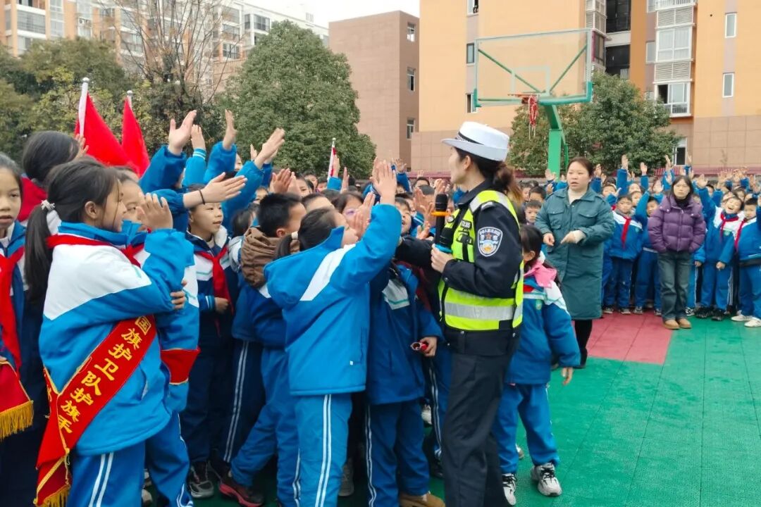 交通安全进校园,播撒“平安种”。为预防和减少校园交通安全隐患,努力营造安全、和谐、畅通有序的校园交通环境,宣传民辅警通过通俗易懂的语言,向同学们讲解过马路、乘车、骑车等方面的交通安全知识。此外,还鼓励同学们争当“交通安全卫士”,将学到的交通安全知识带回家,提醒父母遵守交通规则,共同营造安全的交通环境。