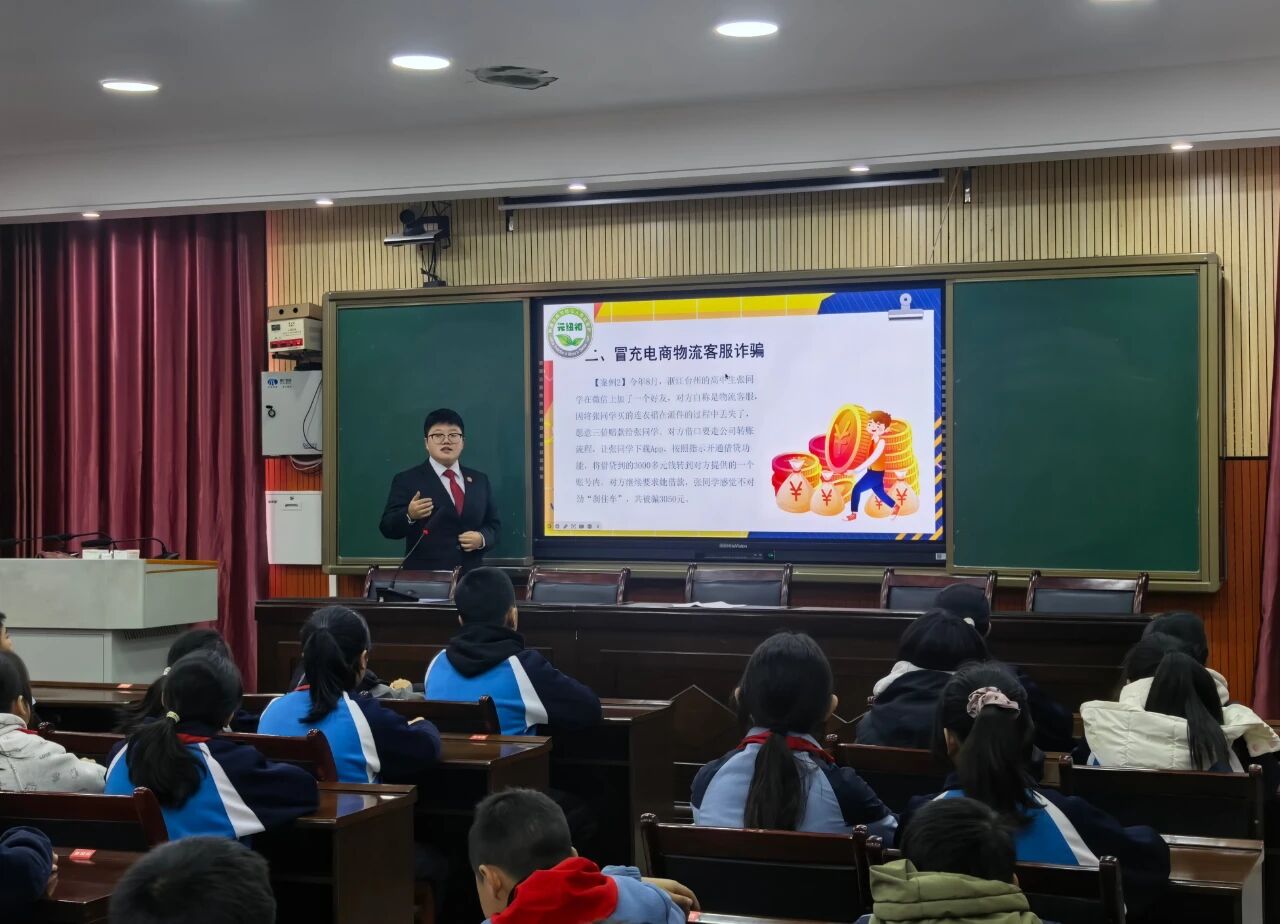 为进一步加强未成年人法治教育,筑牢校园安全网,提升青少年的法治意识和自我保护能力,12月2日,瓮安法院玉山法庭的干警们走进玉山小学,开展了一场主题为“反诈宣传进校园,共筑防骗防火墙”的普法活动,为同学们带来了一堂既生动又实用的反诈知识小课堂。