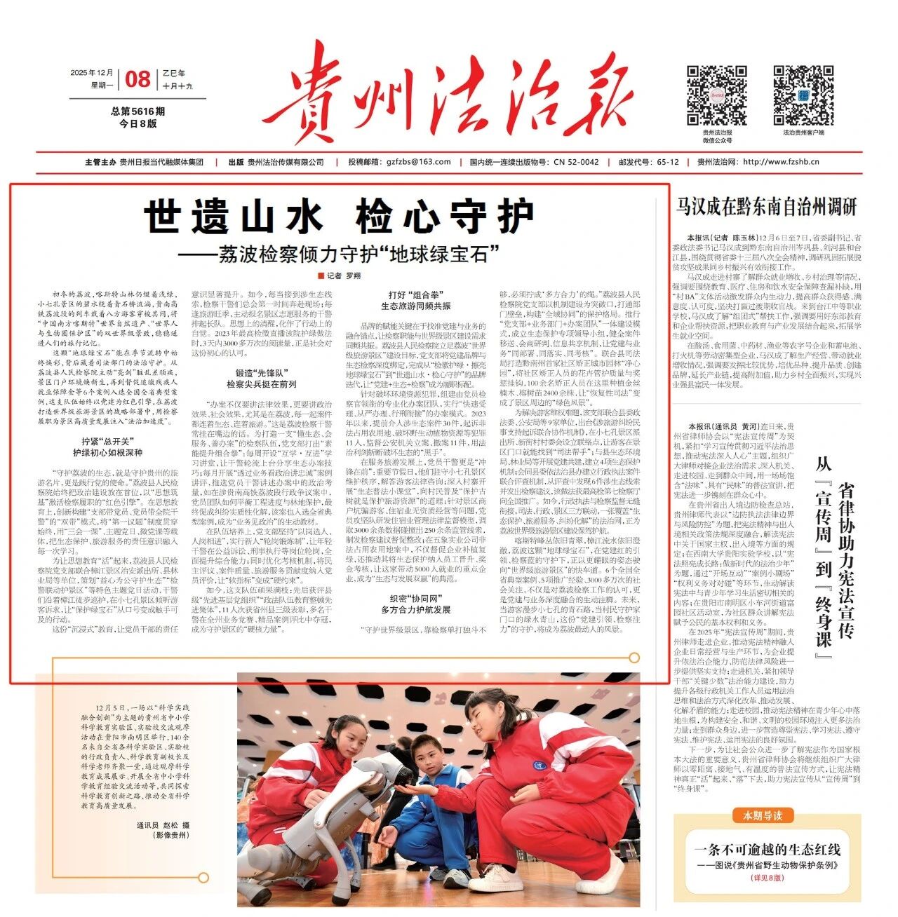 喀斯特峰丛依旧青翠,樟江流水依旧澄澈,荔波这颗“地球绿宝石”,在党建红的引领、检察蓝的守护下,正以更耀眼的姿态驶向“世界级旅游景区”的快车道。6个全国全省典型案例、5项推广经验、3000多万次的社会关注,不仅是对荔波检察工作的认可,更是党建与业务深度融合的生动注脚。未来,当游客漫步小七孔的青石路,当村民守护家门口的绿水青山,这份“党建引领、检察注力”的守护,将成为荔波最动人的风景。