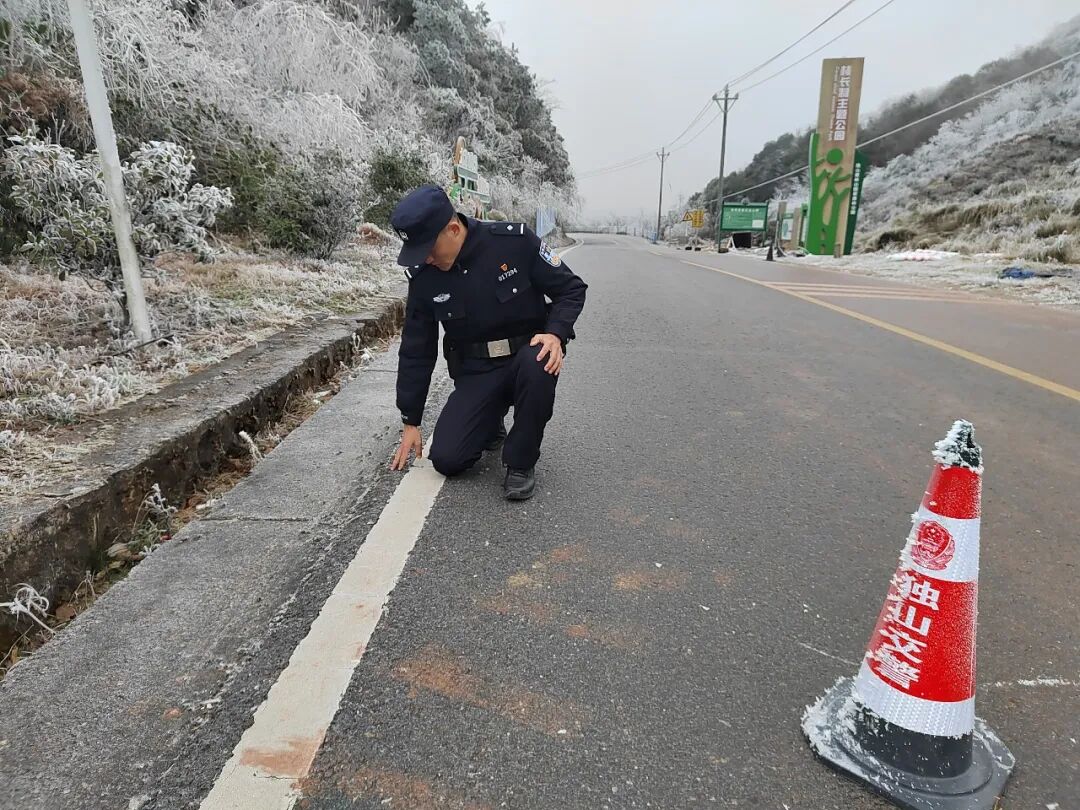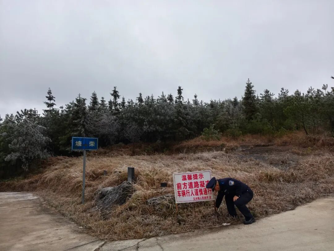 与此同时,各基层派出所开展全域巡查防控,从深夜到白天,不间断奔赴各易凝冻路段。执勤民辅警在重点路段设置警示牌、摆放反光锥桶,对不具备通行条件的路段临时封闭,引导车辆绕行,逐一对过往车辆和群众进行安全提醒。