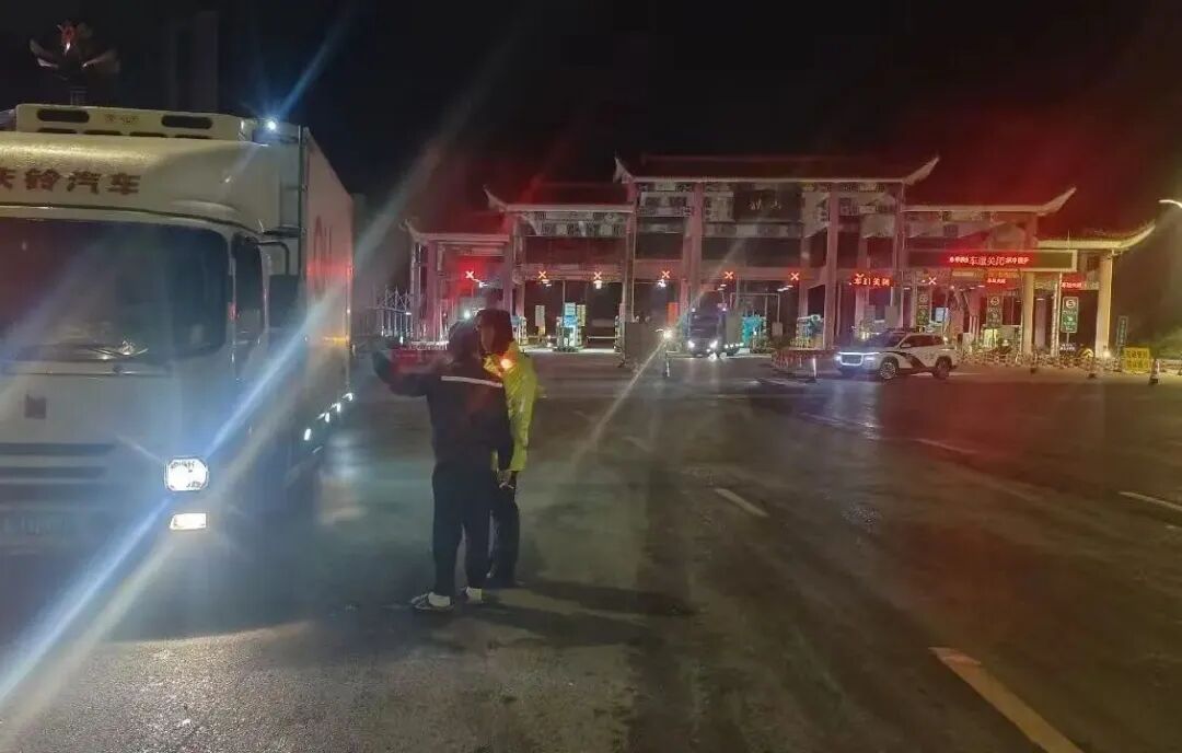 1月21日凌晨1时,气温降至最低点,路面结冰风险持续攀升。独山公安对独山境内兰海高速沿线收费站实施管控,采取只出不进措施,避免车辆滞留引发安全事故。执勤民辅警坚守在收费路口,逐一告知驾驶员管控要求,耐心做好解释工作,安抚群众情绪。