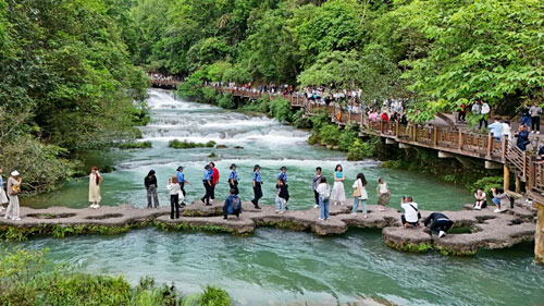 荔波县公安局旅游警察女子中队在小七孔景区开展巡逻