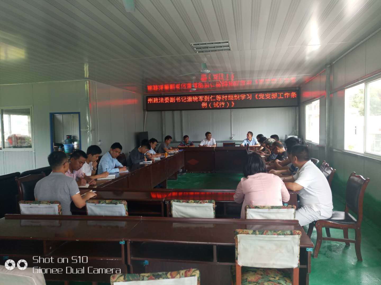 潘晓军来到仁等村,向村支两委干部和部分党员群众宣讲《中国共产党支部工作条例(试行)》和扫黑除恶相关政策法规。潘晓军向参会同志介绍了《条例》颁布的背景、指导思想和重大意义,带领大家围绕组织设置、基本任务、工作机制、组织生活、党支部委员会建设等方面对《条例》进行了重点学习。