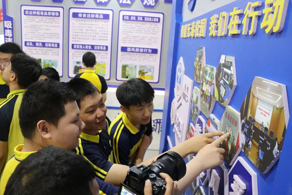 该基地推行“敞开式教育”,坚持“开放、共享”的发展理念,疫情防控期间,每天早上9:00至晚上20:00开放,实现校园禁毒教育工作常态化、阵地化、信息化。同时定期邀请禁毒工作者和禁毒青年志愿者开展丰富多彩的禁毒宣传教育活动、志愿服务,让师生更深刻地了解毒品危害,学习禁毒和法律知识,筑牢拒毒思想防线。