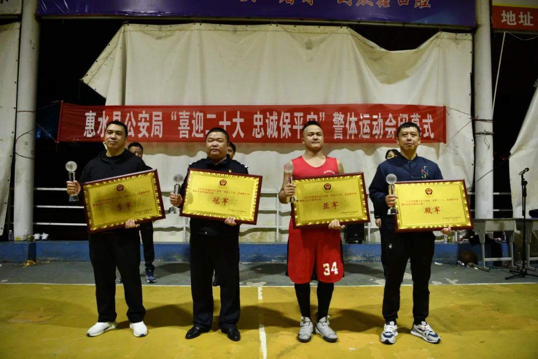 近日,惠水县公安局“喜迎二十大、忠诚保平安”警体运动会圆满结束,成功落下帷幕。县人民政府副县长、县公安局党委书记、局长姚锋参加闭幕仪式并致辞,闭幕式由局党委副书记、政委罗天桥同志主持,在家党委委员、各参赛队及获奖代表参加仪式。