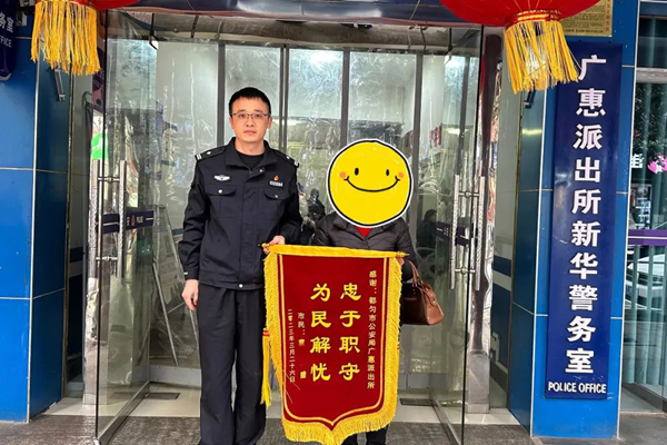 3月29日,蒙女士将一面印有“忠于职守 为民解忧”的锦旗送到广惠派出所,再次对民警表示感谢。
