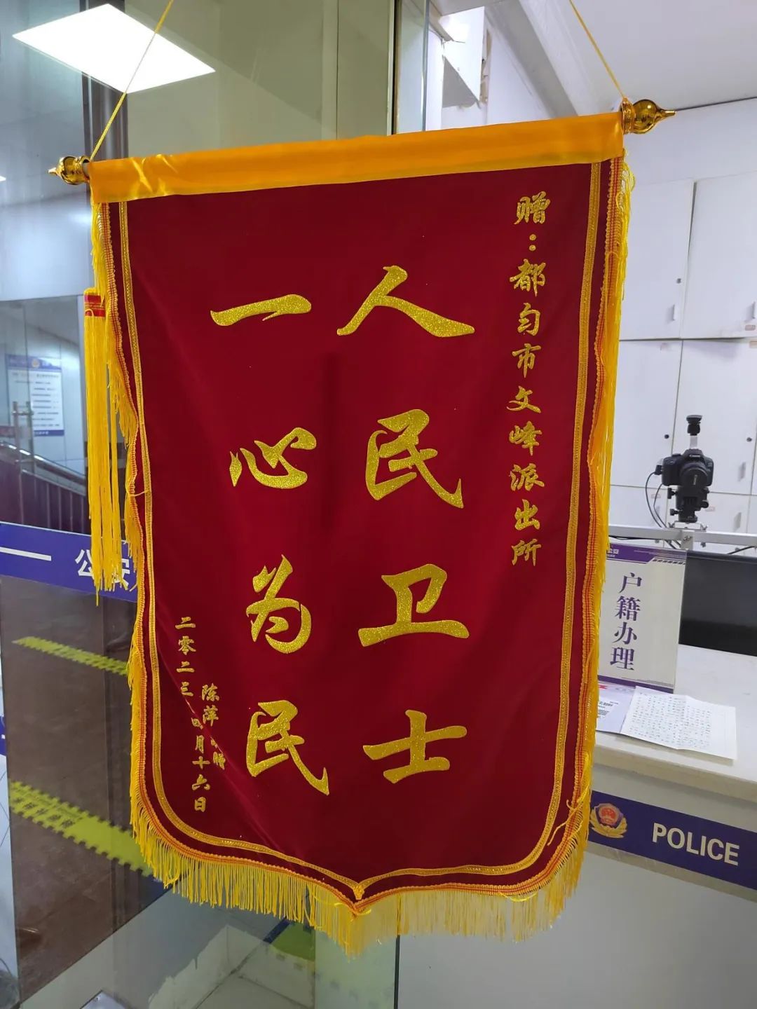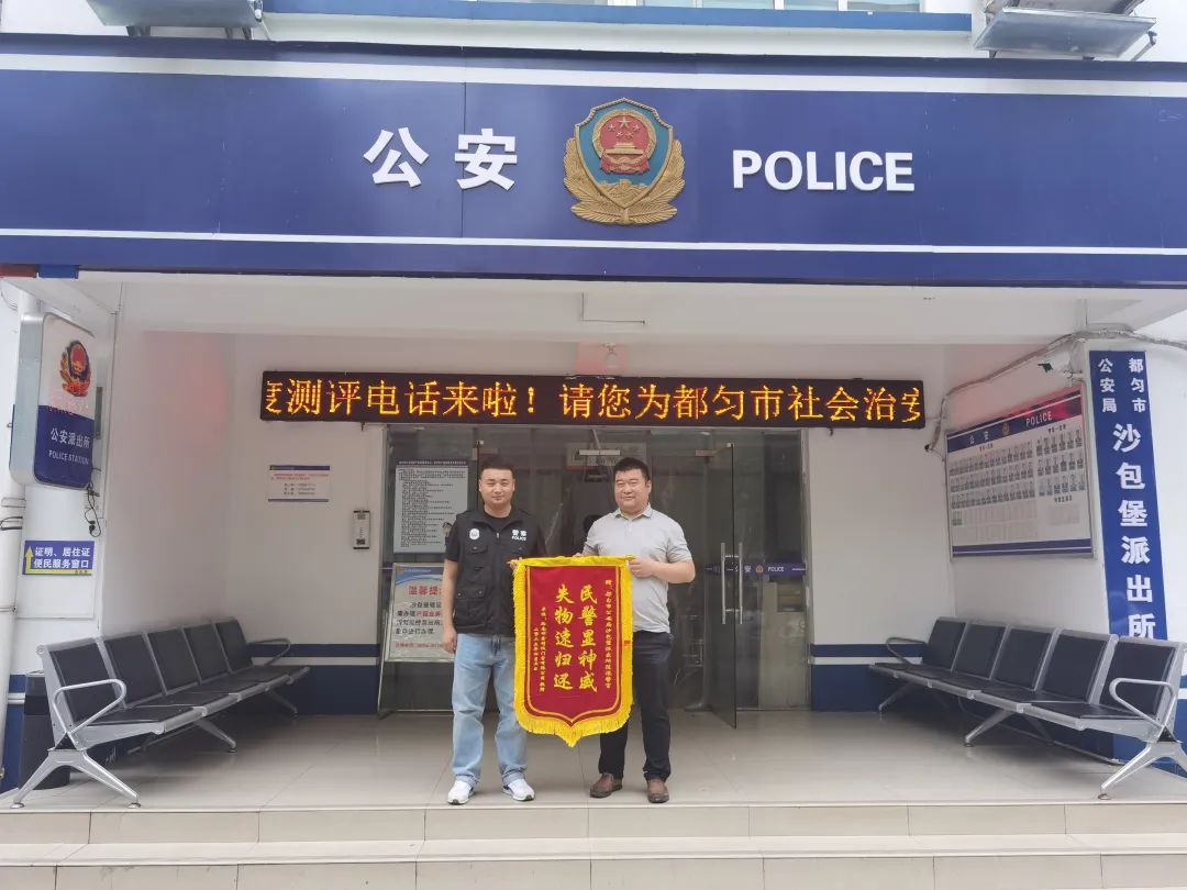 4月23日,在都匀做生意的严先生将一面绣有“民警显神威,失物速归还”的锦旗送到都匀市公安局沙包堡派出所民警手中,对民警快速侦破盗窃案,挽回自己的损失表示衷心的感谢。