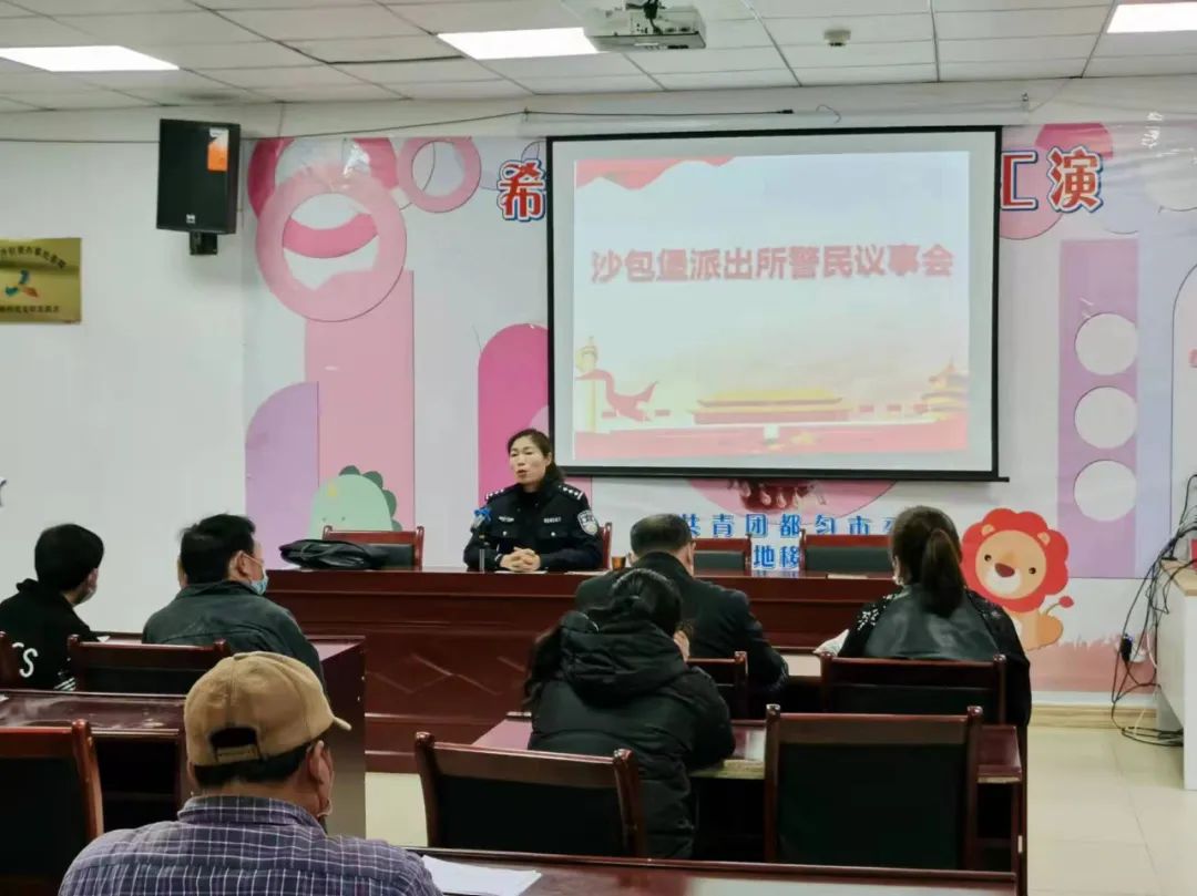 “居民朋友们,咱们小区就有人因为刷单上当受骗了,大家一定要记住不要刷单,所有刷单都是诈骗……”在沙包堡办事处一小区广场上,一场“警民议事会”正在展开,沙包堡派出所民警正在向群众宣传着反电诈、防溺水和养老诈骗等安全防范知识。