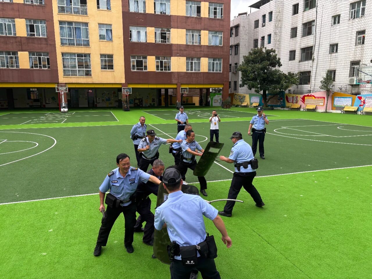 理论课上,民警甩干货:结合近期校园安全案例,拆解风险识别要点,手把手教防暴盾格挡、钢叉锁控等器材用法,“报警要说清位置”“先阻拦再上报”都讲得明明白白,强调“快响应、阻得住、联动好”。