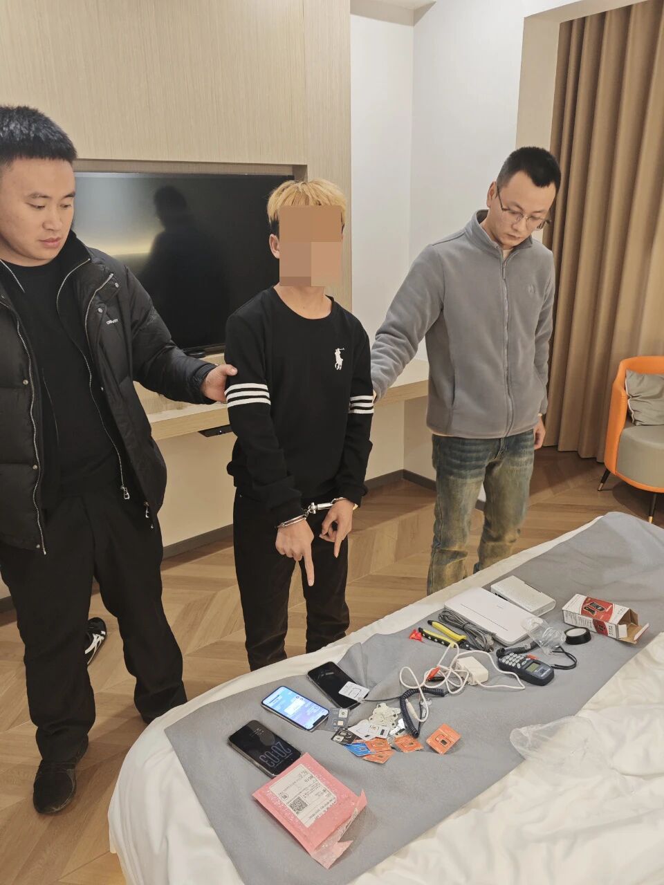 2025年11月3日,瓮安县公安局新侦大队在工作中获悉,有人准备在辖区架设“GOIP”设备用于实施诈骗。民警从大量的数据中抽丝剥茧确定了嫌疑人身份信息,在锁定其动向后办案民警迅速将犯罪嫌疑人黄某在酒店抓获归案,现场缴获用于架设GOIP的设备若干。