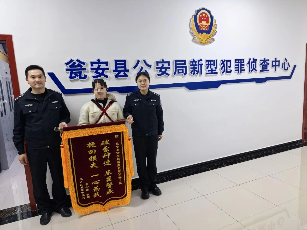 “多亏了你们,我被骗的8万多元血汗钱才能一分不少追回来!”近日,在瓮安县公安局新侦大队,瓮安县瓮水办事处李女士带着一面锦旗和感谢信特意感谢办案民警。“其实你们平时多学一点反诈知识,少一次被骗经历,就是对我们最大的感谢!”办案民警在接过锦旗和感谢信这样说道。