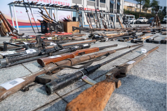 按照公安部、省公安厅集中销毁非法枪爆物品行动安排部署,10月29日上午,黔南州公安局在独山县设置集中销毁非法枪爆物品活动现场,组织开展以“消除枪爆隐患警民共创平安”为主题的集中销毁非法枪爆物品活动,共销毁各类枪支185支,管制刀具136把。