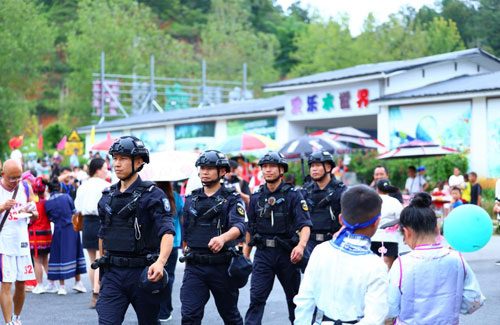 赛场外的温情故事同样暖心。晒车市集上,一位游客买完水族银饰后遗落钱包,摊主通过“平安连铺群”联系民警,不到十分钟便找到失主;都柳江沿岸,民警化身“临时导游”,推荐铁板烧、咕噜寨等特色打卡点;长桌宴现场,他们既仔细检查食品安全,又主动帮游客拍照留念。“虽然嗓子哑了、腿也酸了,但是游客玩得舒心,我们辛苦点也值。”巡逻民警们笑着说道。