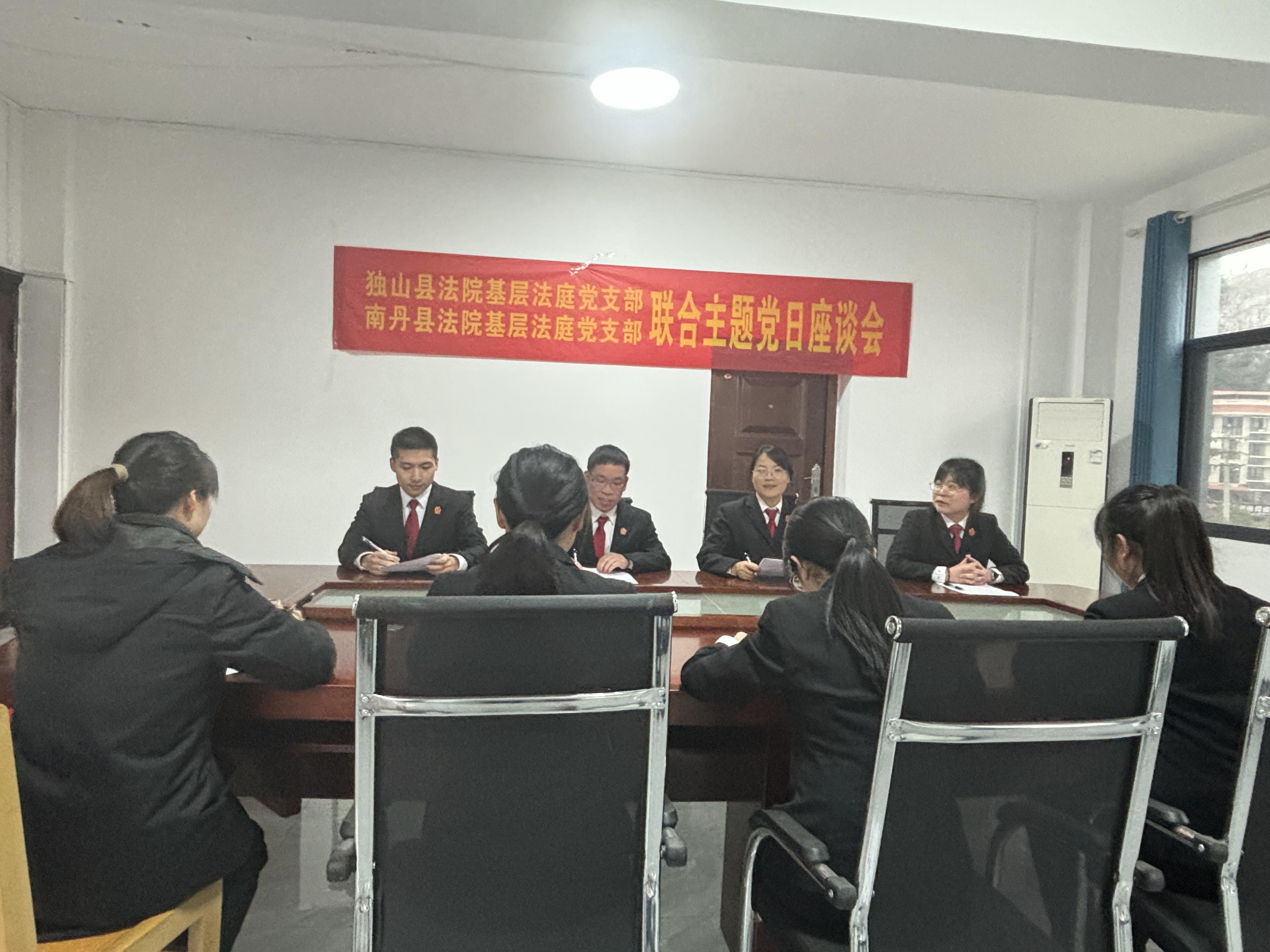 活动伊始,全体干警面向党旗庄严宣誓,重温入党誓词。宣誓结束后,两院干警开展集中学习与工作交流,围绕党建品牌创建、边界纠纷多元化解、司法服务提质增效等重点工作分享经验做法,深入探讨跨域司法协作的切入点与发力点,共同研究完善协作举措。