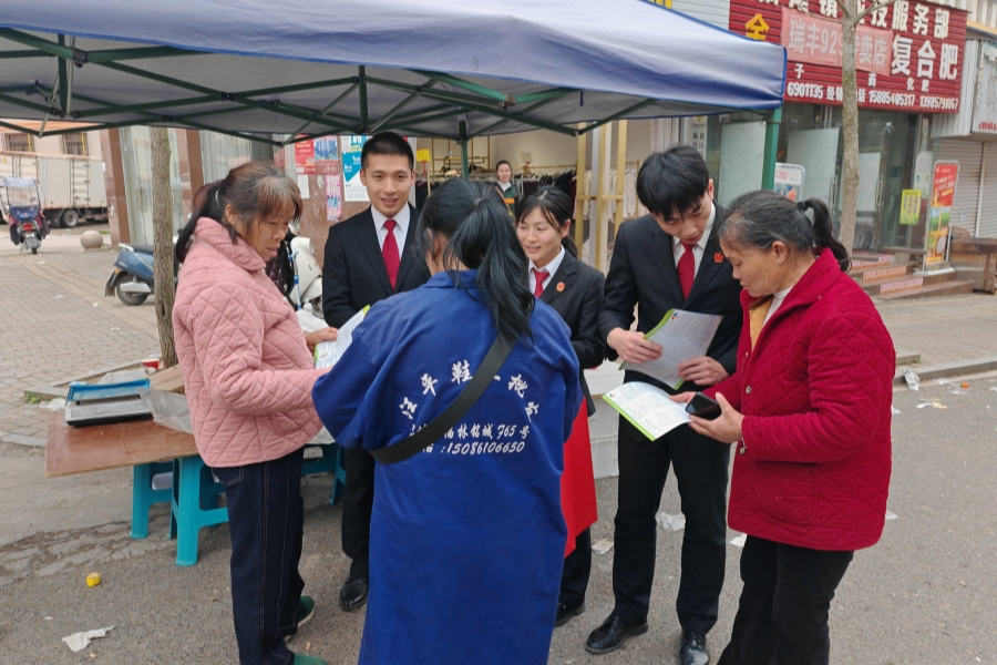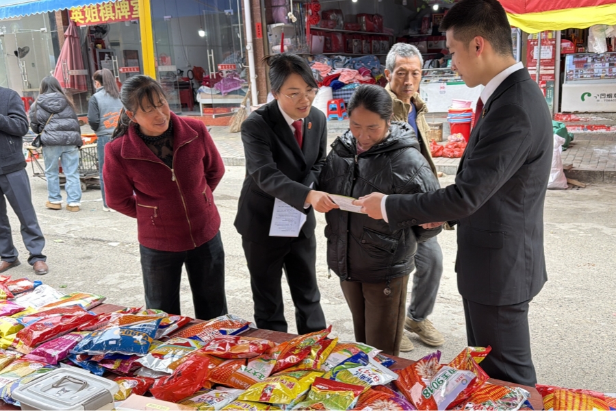 学习交流结束后,两院干警前往人流密集区域麻尾镇集市开展上街普法宣传活动。活动中,干警们向往来妇女群众发放法治宣传资料,重点围绕《中华人民共和国民法典》《中华人民共和国妇女权益保障法》《中华人民共和国反家庭暴力法》及诉讼服务指南等内容进行细致宣讲。针对群众普遍关心的婚姻家庭纠纷、家庭暴力维权、人身安全保护令申请等热点问题,干警们创新采用“方言+普通话”双语服务模式,为群众提供“一对一”精准答疑服务,耐心解答法律疑问,细致讲解维权途径,引导广大妇女群众树立法治意识。