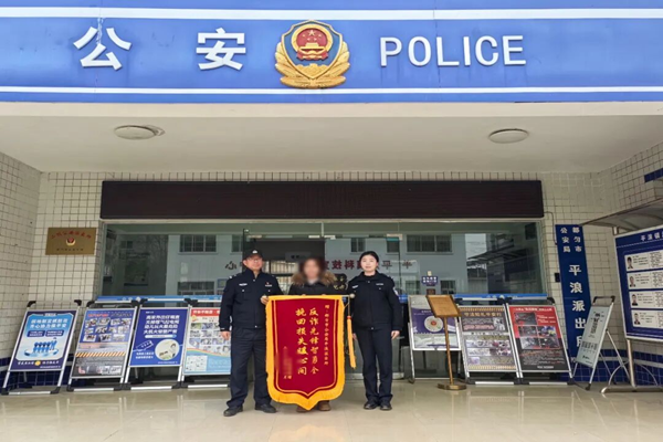 “反诈先锋智勇全,挽回损失暖心间!”近日,都匀市平浪镇居民韦女士将一面锦旗送到派出所民警手中,向民警为其追回部分被诈骗资金表示感谢。