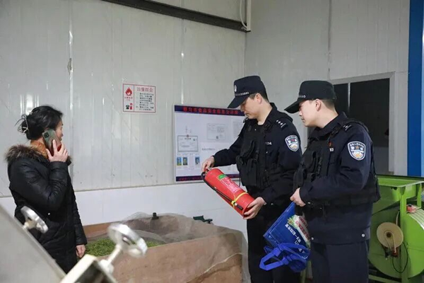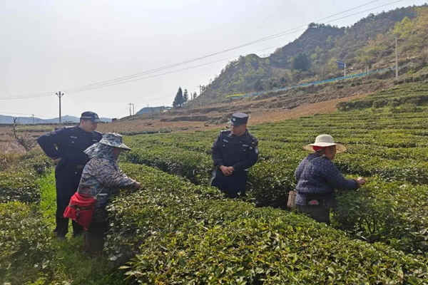 在做好治安巡控及矛盾纠纷排查化解的同时,同步抓好茶园采摘现场的安全宣传工作。针对采茶季高发的财物盗窃、电信诈骗、矛盾纠纷、交通安全等问题,通过发放宣传手册、宣讲典型案例等方式,向茶农、茶商普及反诈、防盗、防火及交通安全知识。此外,民辅警还深入茶企生产车间,排查消防设施配备及用电用火情况,并现场详细讲解火灾应急处置实用技巧,进一步提升茶企安全管理水平。