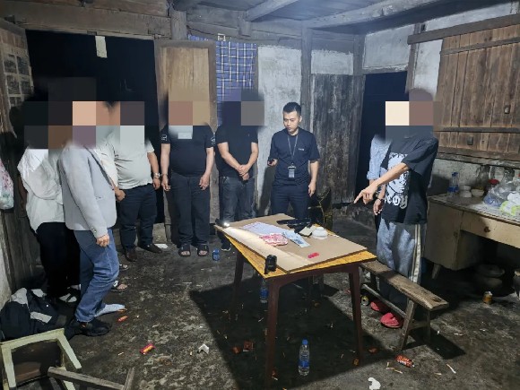 当日凌晨2时许,木引派出所民警在开展日常排查工作中,行至木引镇水井村三组时,发现一村民家中灯火通明、人员聚集嘈杂,形迹十分可疑。民警当即警觉,不动声色上前侦查,确认屋内郑某林等10余人正以“闶宝”的方式进行聚众赌博。确认情况后,民警果断采取行动,迅速布控、合力围捕,当场将所有参赌人员悉数控制。随后,民警依法将13名涉案人员全部传唤至罗甸县公安局进行调查。