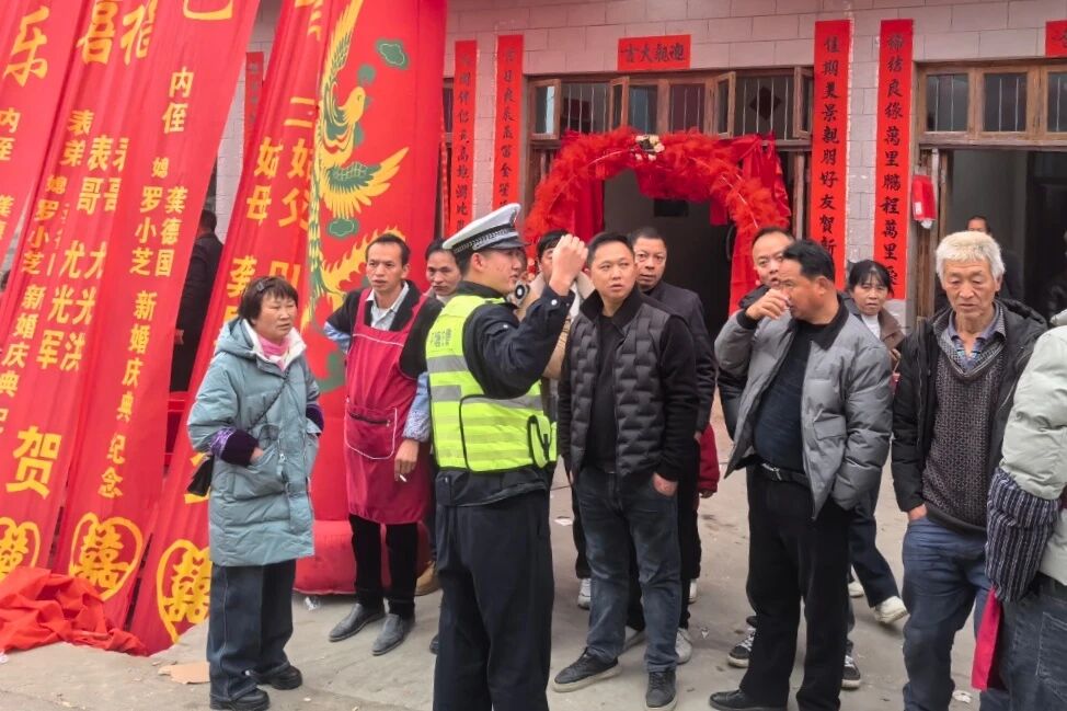 交警大队和辖区派出所通过主动对接各村(居)委会、巡逻排查等方式掌握各村“杀猪饭”“红白喜事”活动信息,主动上门找到事主或现场管理人员,通过面对面“打招呼”、现场宣讲的方式,将交通安全法律法规宣传触角延伸至活动现场。民警用通俗易懂的语言,向现场群众重点讲解超员驾驶、酒驾醉驾的法律责任与严重危害,提醒大家严守“喝酒不开车、开车不喝酒”的安全准则,坚决杜绝酒后驾车、摩托车骑乘多人、超员行驶等违法行为。民警还指导事主在路口设置提示牌,安排人员引导车辆有序停放,防止乱停车造成道路拥堵,引发交通事故。