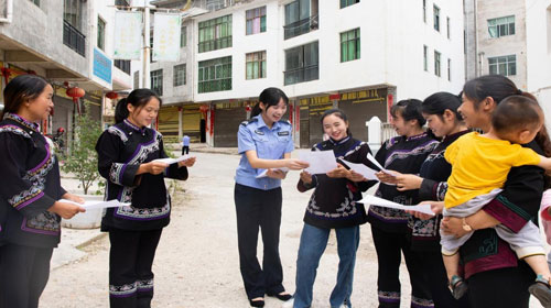 所里组建由民辅警、“法律明白人”组成的宣传队,将交通安全、反诈知识等翻译成少数民族语音,编成顺口溜、填入民间小调。乡村大喇叭、民俗节庆、赶集日,都是他们的“普法阵地”。赶集日里,民警摆摊设点发传单、解疑惑;院坝会上,用“汉语+水语”唠家常式宣讲,揭穿“免费送鸡蛋”“神奇保健品”等骗局。玉丙村村民陈大妈说:“我们不识字,广播里的宣传听得懂、记得住,比如中奖要先交手续费就是诈骗。”