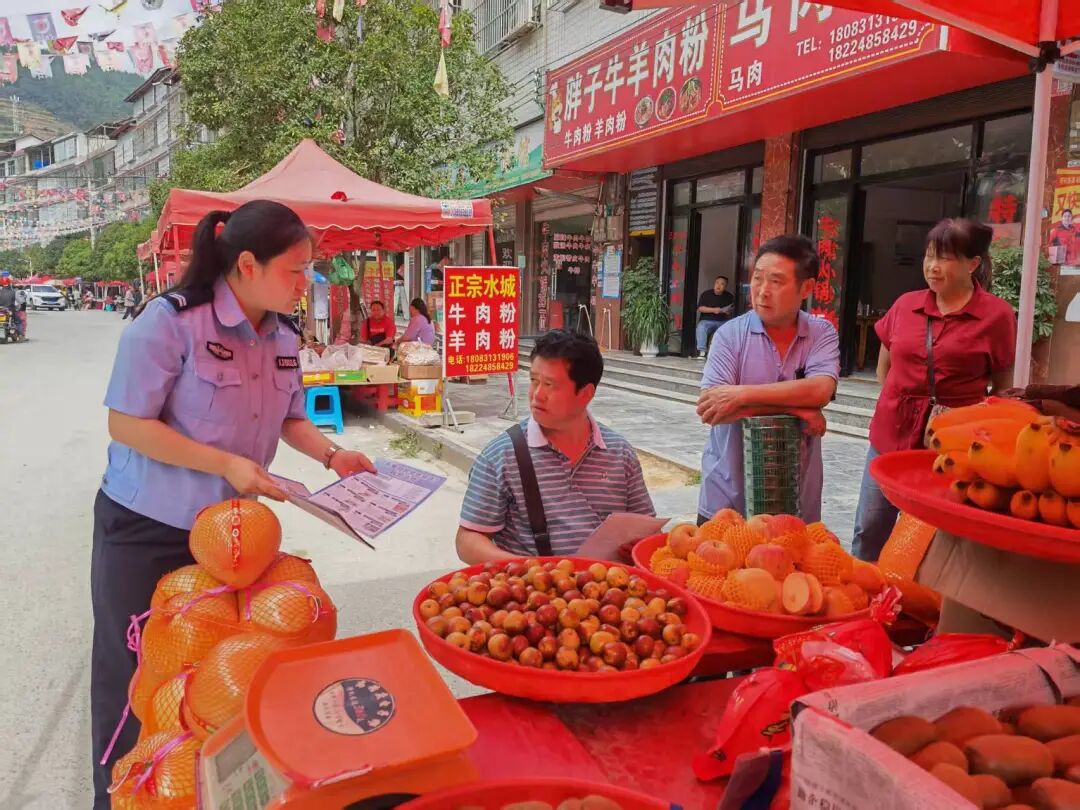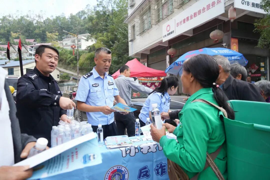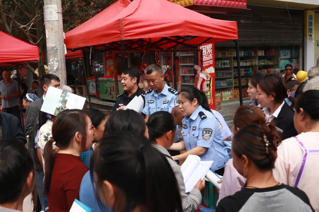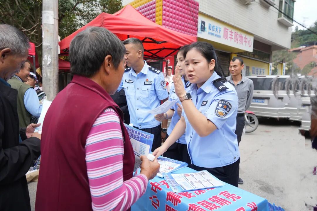 10月14日,正值福泉市道坪镇谷龙村赶集日,四里八乡的村民纷纷涌向集市。福泉公安借此人流密集的有利时机,组织新侦、食药环、法制、派出所及驻村工作队将“普法宣传摊位”设到群众身边,围绕反诈、野生动物保护、打击非法采矿等重点内容,开展了一场“零距离”接地气的普法宣传。