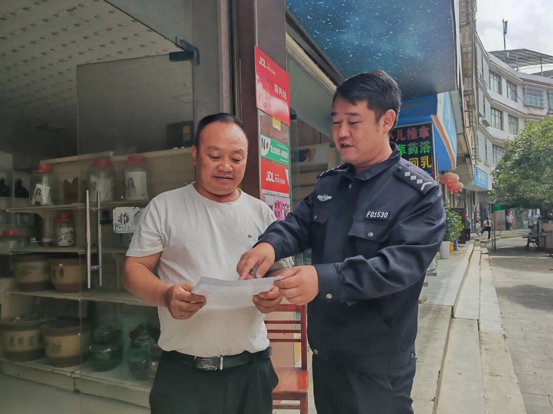 为确保宣传全覆盖、无死角,民警还逐一走访沿街各商铺,向商户发放宣传资料,并结合经营实际,有针对性地讲解防范电信网络诈骗、识别假冒伪劣商品以及守法合规经营的重要性,鼓励商户成为社区安全的“前哨”和“信息员”。